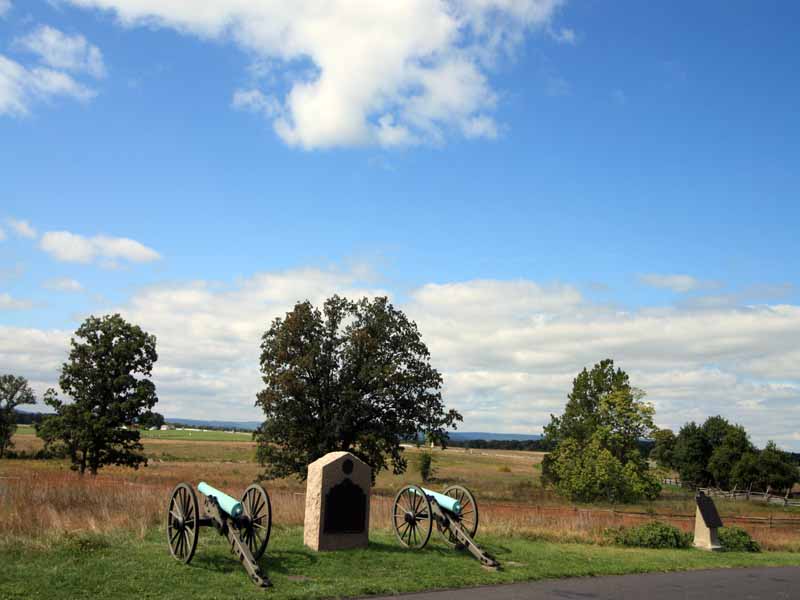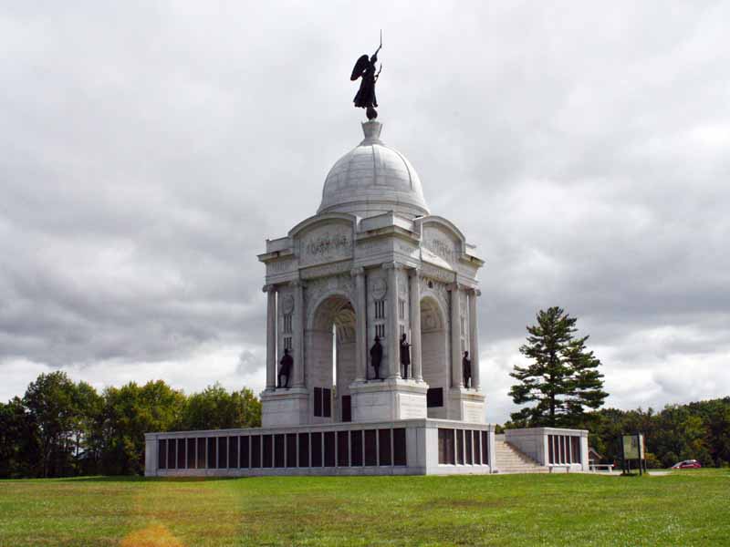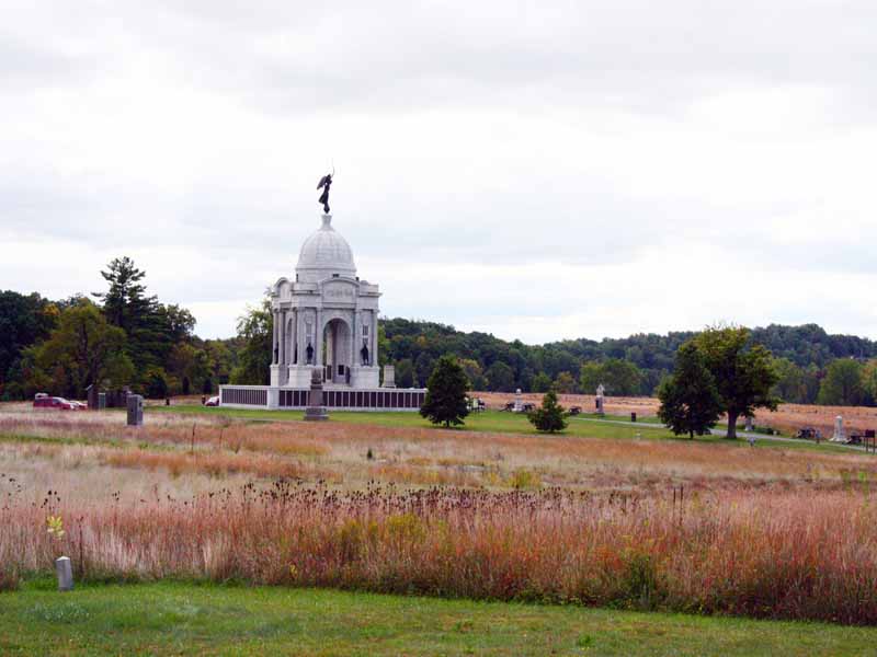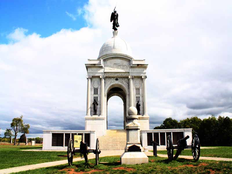 Gettysburg has become very touristy, reliving the most minute details of the battle. However, you can explore this national park and the rolling hills of the battlefield and the town streets with their historic houses at your leisure in your car. Begin your visit to Gettysburg National Military Park at the new Gettysburg Museum and Visitor Center. The new facility opened its doors on April 14, 2008 and the museum has been created to tell the Civil War story. There are over 1,000 monuments and cannons along over 40 miles of scenic roads, a battlefield shrine to the Union and Confederate soldiers who fought here. Visit the scene of the Gettysburg Address, Picket's Charge, General Robert E. Lee's Headquarters, Little Round Top, and the Devil's Den. The Soldier's National Cemetery has become the final resting place for veterans of American wars dating from the Civil War through the Vietnam War. There is a re-enactment of the Gettysburg battles the first week of July.