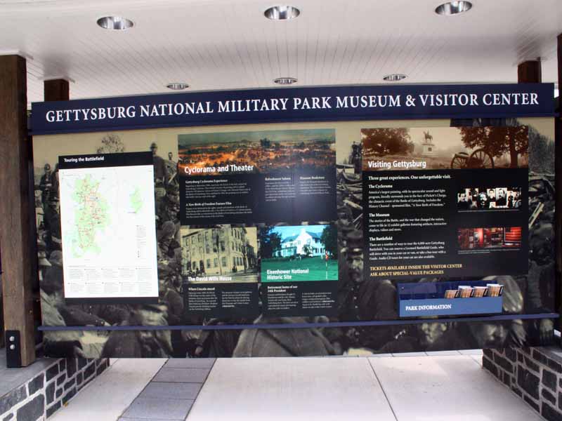 In late September 2008, the newly restored Gettysburg Cyclorama painting was open to the public at the Visitors Center. This 377 foot painting in-the-round recreates Pickett's Charge and the peak of the fighting at the Gettysbug battle. It also includes a magnificent sound and light program to bring the painting to life. Gettysburg is worth the visit because of its history and its impact on America. |
