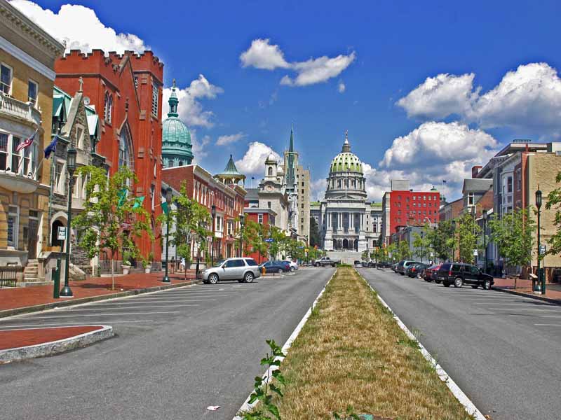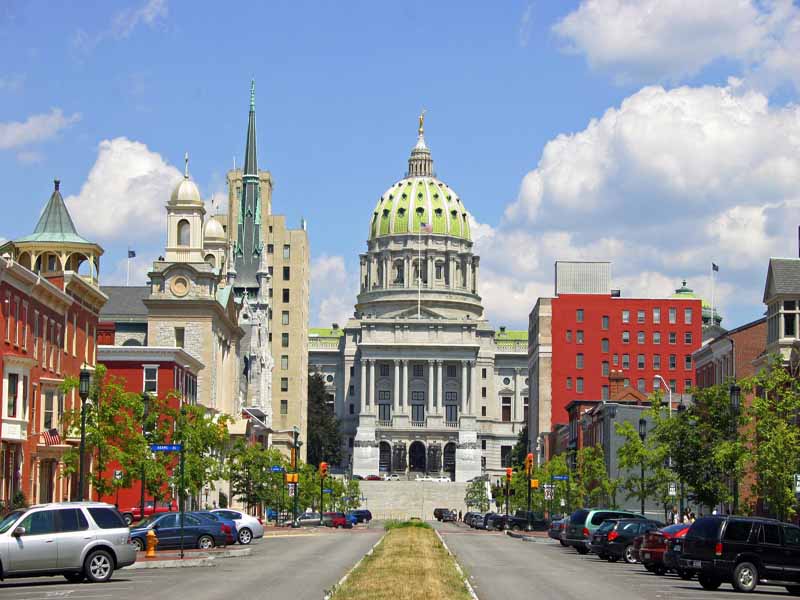 Harrisburg is the capital, the fifth largest city in the state and the home of your travel correspondents, Jim and Pat. It has undergone a dramatic economic change since the 1980s. Along the shores of the Susquehanna River, Harrisburg has grown from a modest ferry outpost to a picturesque capital city. An upcoming center for the region's arts and culture, it offers competitive pleasures of an urban metropolis.